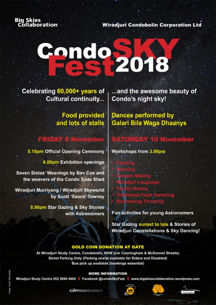 Originally inaugurated in 2018, Condo SkyFest has become a cornerstone of Wiradjuri cultural celebration. Although the 2020 and 2021 editions were regrettably canceled due to the COVID-19 pandemic, the 2022 iteration marked the event’s triumphant return. Generous support from State and Federal governments, and numerous other sponsors has been instrumental in making Condo SkyFest 2024, and all previous events possible.