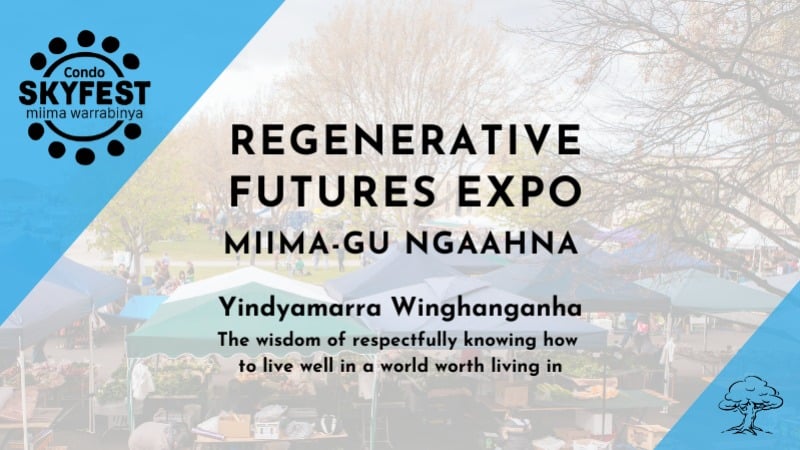 Our first Regenerative Futures Expo: Miima-gu Ngaahna (Reaching for the Stars), part of Condo SkyFest Miima Warrabinya, embodies a commitment to protecting and nurturing Country in the spirit of Yinndyamarra Winhanganha (The wisdom of respectfully knowing how to live well in a world worth living in.)